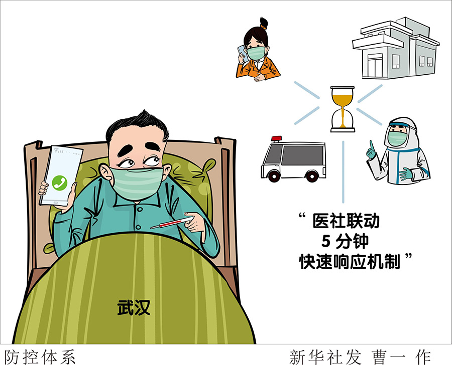 武漢青山區(qū)鋼花村街110社區(qū)書(shū)記馮丹介紹稱,鋼花村街制定了“醫(yī)社聯(lián)動(dòng)5分鐘快速響應(yīng)機(jī)制”:遇到有居民反映相關(guān)癥狀時(shí),社區(qū)工作人員第一時(shí)間通報(bào)社區(qū)衛(wèi)生服務(wù)中心,值班醫(yī)生5分鐘內(nèi)電話聯(lián)系疑似患者或家屬,作出是否需要上門(mén)診斷或轉(zhuǎn)診的預(yù)判,并反饋社區(qū);醫(yī)生判斷不需上門(mén)的,由社區(qū)網(wǎng)格員指導(dǎo)居民居家觀察;醫(yī)生判斷需要上門(mén)的,則由社區(qū)申請(qǐng)應(yīng)急車,先到社區(qū)衛(wèi)生服務(wù)中心接醫(yī)護(hù)人員,再會(huì)同社區(qū)工作者上門(mén),將患者及醫(yī)護(hù)人員送往發(fā)熱門(mén)診。
