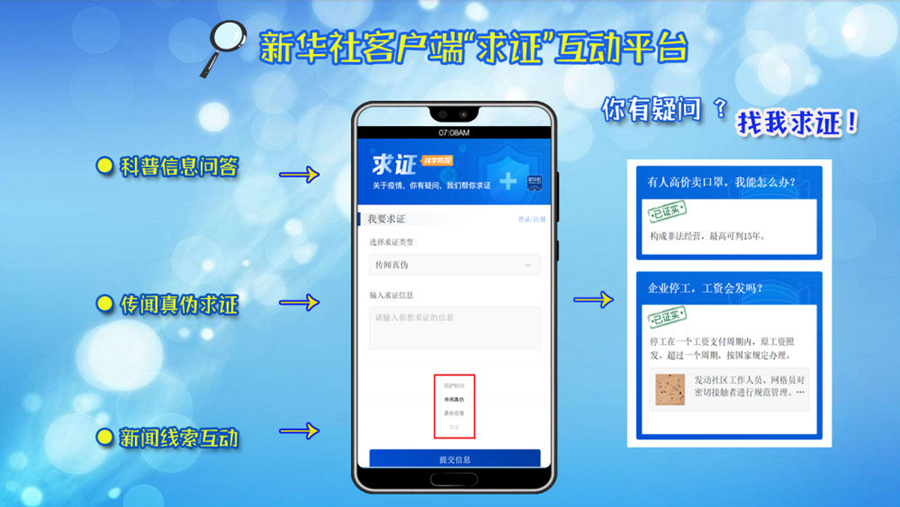 當前,疫情防控正處于關(guān)鍵時期,權(quán)威信息的及時獲知、科學防護知識的廣泛普及,至關(guān)重要。新華社客戶端“求證”平臺希望通過與您的良性互動,可以盡量幫到您,并希望以求知求真的方式,與您一起,為打好疫情防控阻擊戰(zhàn)貢獻力量。