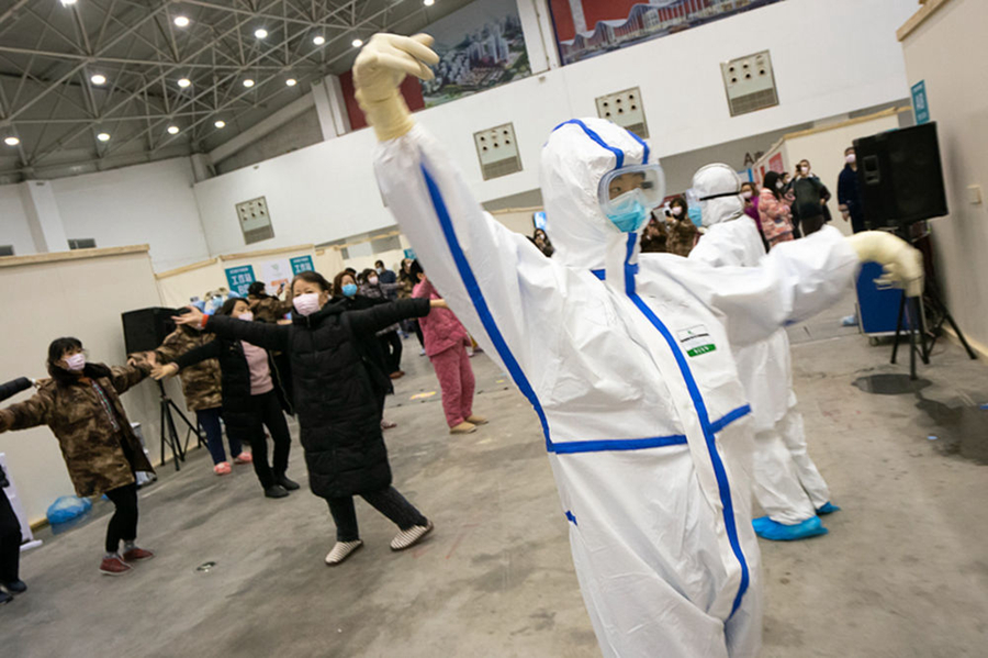 在武漢客廳方艙醫(yī)院,就算隔著厚厚霧氣的防護(hù)鏡,我依然被眼前景象深深打動(dòng):病人相互加油鼓勁,打拳的、拼魔方的、跳廣場(chǎng)舞的…他們有人呼吸艱難,喘著粗氣,卻也努力伸展,露出生命本來(lái)的頑強(qiáng)模樣。