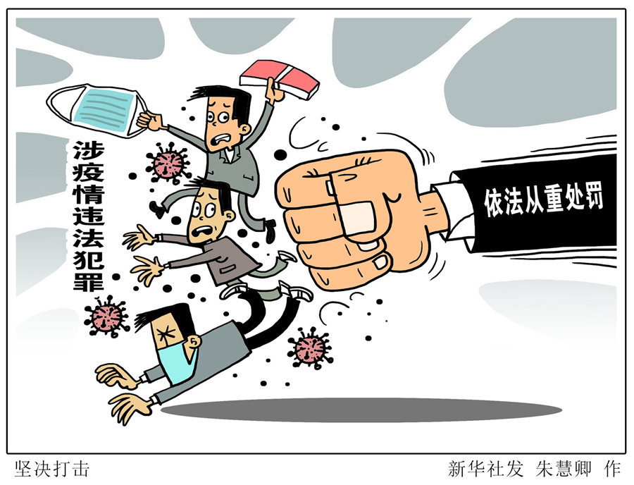 2月10日,最高人民法院、最高人民檢察院、公安部、司法部聯(lián)合發(fā)布關(guān)于依法懲治妨害新型冠狀病毒感染肺炎疫情防控違法犯罪的意見(jiàn),針對(duì)當(dāng)前突出的涉疫情防控違法犯罪,統(tǒng)一執(zhí)法標(biāo)準(zhǔn)、程序、依據(jù),并強(qiáng)調(diào)加強(qiáng)治安管理、市場(chǎng)監(jiān)管等執(zhí)法工作,加大對(duì)暴力傷醫(yī)違法犯罪行為打擊力度。 新華社發(fā) 王鵬 作