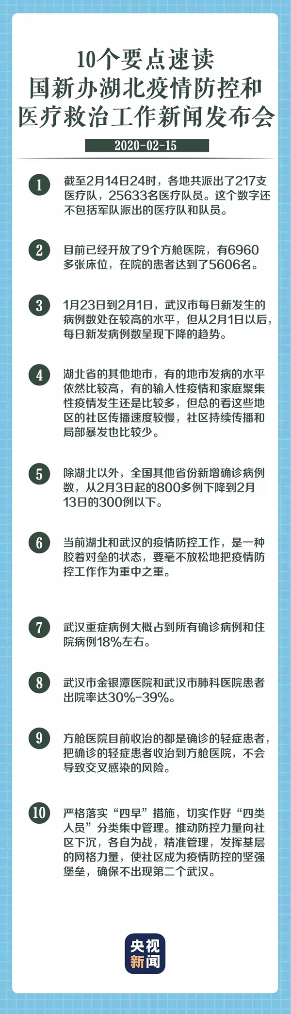 王賀勝:當前新冠疫情的防控到了最關鍵的階段,湖北省武漢市仍然是主戰(zhàn)場,醫(yī)療救治工作堅持把提高收治率、治愈率,降低感染率、病亡率作為重中之重。推動防控力量向社區(qū)下沉,各自為戰(zhàn),精準管理,發(fā)揮基層的網格力量,使社區(qū)成為疫情防控的堅強堡壘,確保不出現第二個武漢。