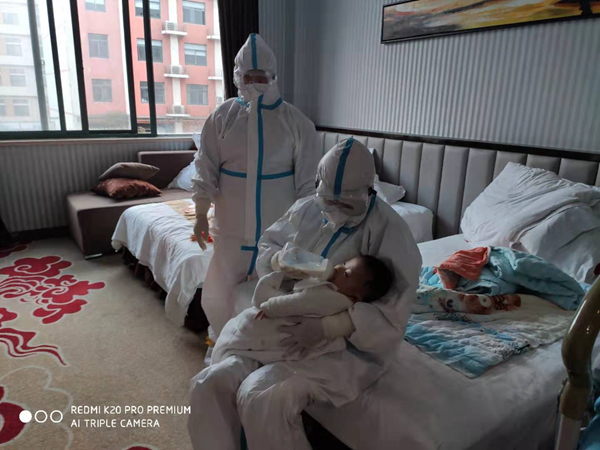 “我行”“讓我去”“讓我來(lái)”……一時(shí)間,安慶市迎江區(qū)醫(yī)衛(wèi)工作者的微信群里迎來(lái)了幾十名爭(zhēng)當(dāng)“臨時(shí)媽媽”的醫(yī)生護(hù)士。在隔離醫(yī)學(xué)觀察點(diǎn),雖然不是救治確診病人的抗“疫”一線,但身處隔離區(qū),不排除會(huì)有被感染的風(fēng)險(xiǎn),可她們卻義無(wú)反顧爭(zhēng)先恐后地去當(dāng)這個(gè)“臨時(shí)媽媽”。后來(lái),區(qū)里綜合考慮選定了6位“臨時(shí)媽媽”,為了方便大家休息,每三個(gè)人五個(gè)小時(shí)一個(gè)班,每天三班倒。