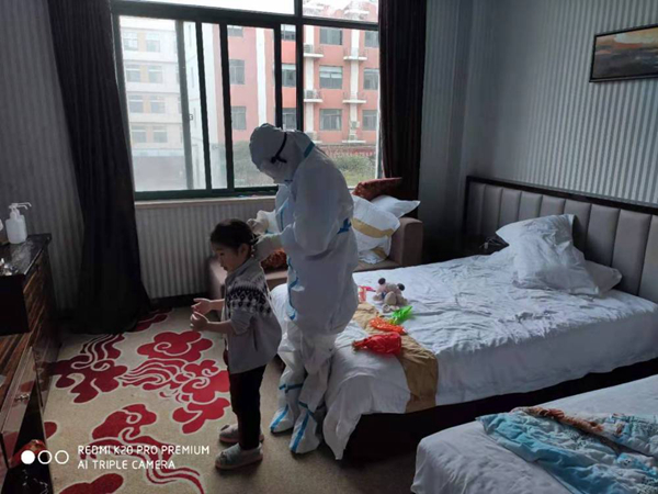 一大家子被隔離,兩個(gè)孩子不能丟在家里沒(méi)人管,這給安慶市迎江區(qū)疫情防控指揮部安置組出了道難題。“誰(shuí)來(lái)照顧已是密切接觸者的兩個(gè)年幼的孩子呢?”安慶市迎江區(qū)濱江街道黨工委書(shū)記趙明來(lái)告訴記者,大家商議之后,決定把兩個(gè)小家伙送到隔離醫(yī)學(xué)觀察點(diǎn),由專業(yè)的醫(yī)護(hù)人員照顧。