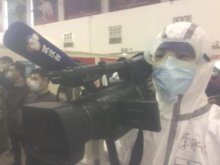 武漢廣播電視臺新聞?lì)l道深度資訊部記者李永杰在武漢客廳方艙醫(yī)院病區(qū)內(nèi)采訪。