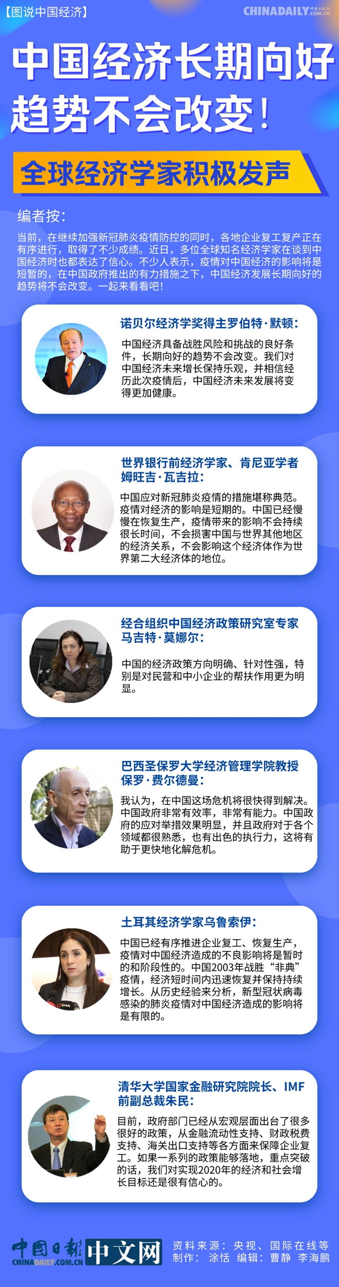 當(dāng)前,在繼續(xù)加強新冠肺炎疫情防控的同時,各地企業(yè)復(fù)工復(fù)產(chǎn)正在有序進(jìn)行,取得了不少成績?。近日,多位全球知名經(jīng)濟(jì)學(xué)家在談到中國經(jīng)濟(jì)時也都表達(dá)了信心。不少人表示,疫情對中國經(jīng)濟(jì)的影響將是短暫的,在中國政府推出的有力措施之下,中國經(jīng)濟(jì)發(fā)展長期向好的趨勢將不會改變。一起來看看吧!