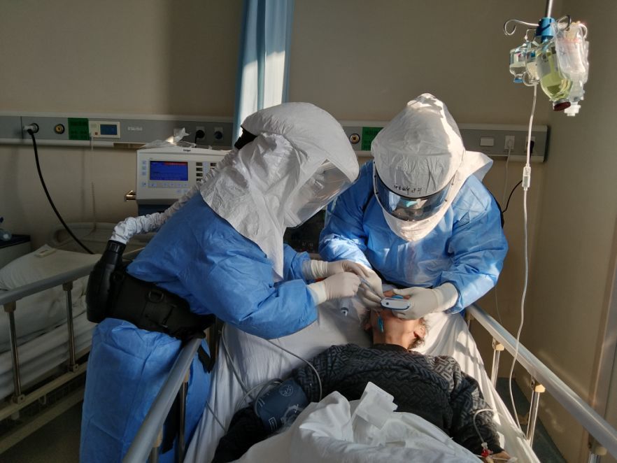 協(xié)和西院16層樓800個床位幾乎全部用來收治新冠肺炎病人,醫(yī)院的插管需求已經(jīng)出現(xiàn)井噴。僅僅一個小時,就有十幾位患者預(yù)約插管。到院第二天,隊員們甚至沒來得及熟悉環(huán)境,就被各個病區(qū)的醫(yī)生拉入戰(zhàn)場。