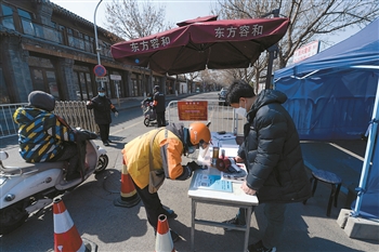 “我們從大年三十就開(kāi)始排班了。我是從正月初三開(kāi)始進(jìn)社區(qū)做入戶排查,現(xiàn)在和另外兩名志愿者一起負(fù)責(zé)這個(gè)路口,從早上九點(diǎn)到晚上九點(diǎn)不間斷。”來(lái)自前門(mén)街道辦事處政務(wù)服務(wù)中心的周偉介紹說(shuō)。