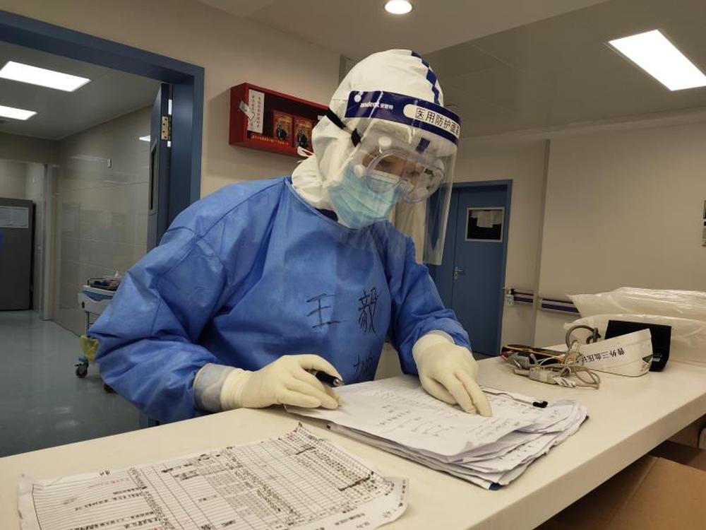 圖為北京大學(xué)人民醫(yī)院馳援武漢醫(yī)療隊的王毅在工作中。