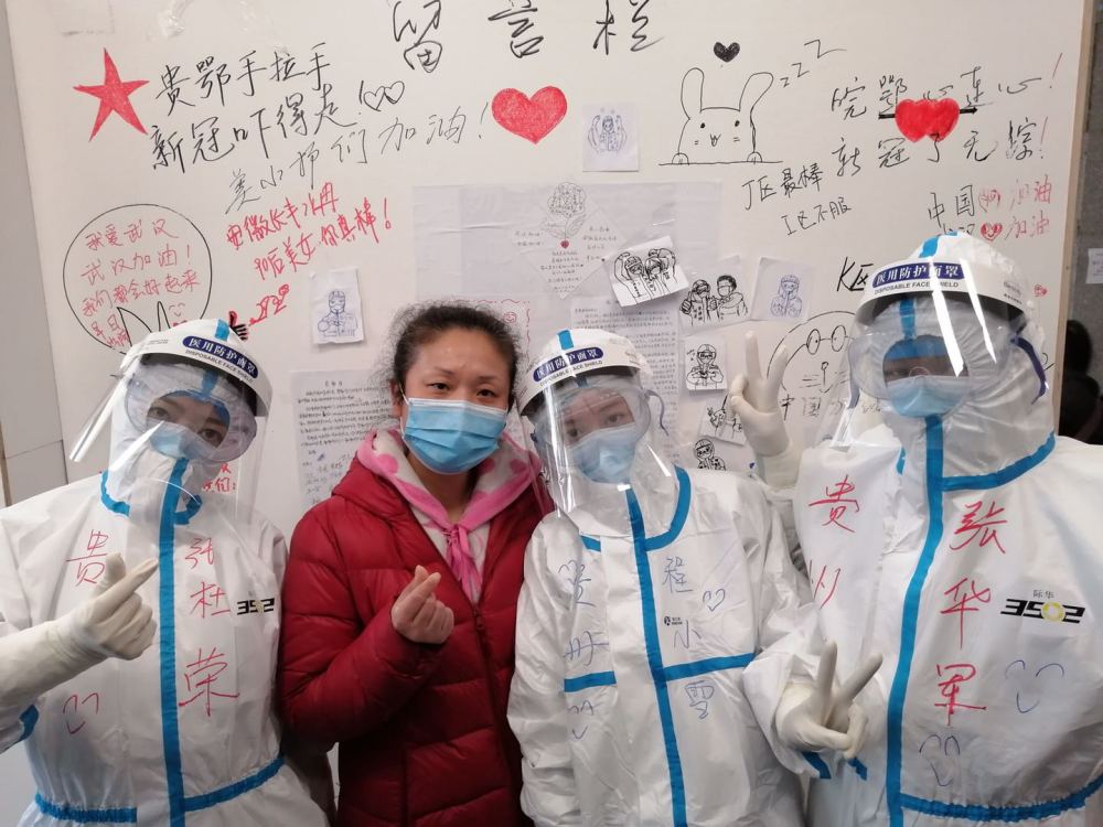 圖為貴州醫(yī)科大學(xué)附屬醫(yī)院援武漢醫(yī)療隊程小雪與患者和同事們。