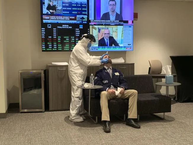 志愿者醫(yī)生為疑似新冠感染者作鼻咽喉拭子檢測。(陳揚洺 供圖)