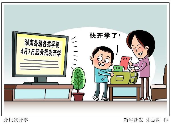 新華社長沙3月28日電(記者袁汝婷)湖南省教育廳27日晚通報,經(jīng)湖南省委、省政府同意,全省高三年級、初三年級于4月7日開學(xué)。之后,湖南各市州根據(jù)本地疫情情況,按照中學(xué)其他年級、小學(xué)、幼兒園的順序,明確轄區(qū)各縣市區(qū)中小學(xué)其他年級和幼兒園錯時錯峰開學(xué)時間。高校在其所在城市的中小學(xué)基本開學(xué)后開學(xué)。