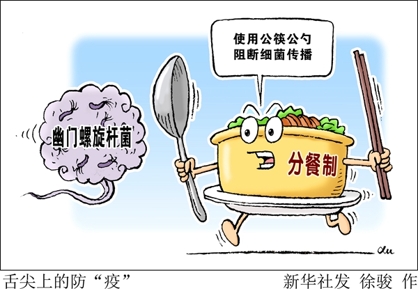 要避免幽門螺旋桿菌的人際傳播,共餐制的危害不應(yīng)忽視。潘紅英說,除幽門螺旋桿菌外,共餐制還可能會(huì)引起多種疾病的傳播,比如甲肝、霍亂、戊肝、細(xì)菌性痢疾、傷寒、腸結(jié)核、脊髓灰質(zhì)炎等,這些疾病在共餐的情況下都有傳播風(fēng)險(xiǎn)。