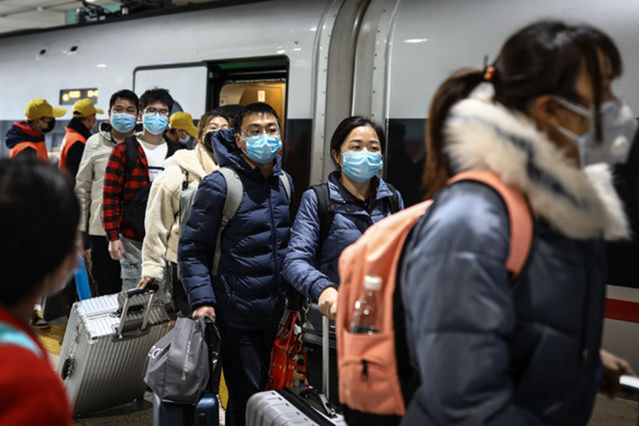 3月28日,武漢火車站,抵達(dá)的乘客在注冊(cè)健康碼。記者 趙迪/攝