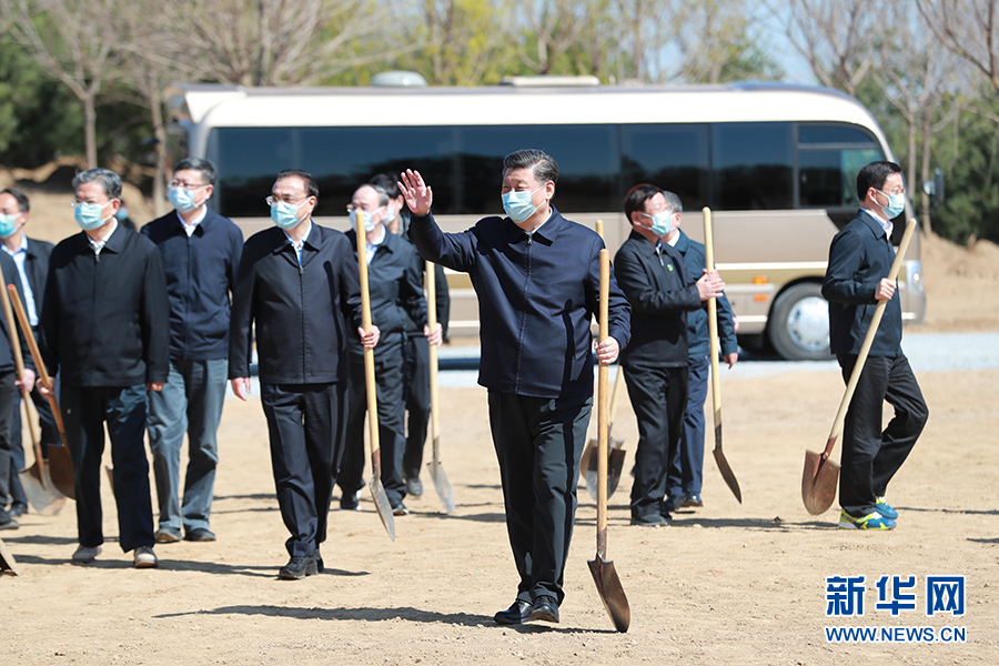 4月3日,黨和國(guó)家領(lǐng)導(dǎo)人習(xí)近平、李克強(qiáng)、栗戰(zhàn)書、汪洋、王滬寧、趙樂際、韓正、王岐山等來(lái)到北京市大興區(qū)舊宮鎮(zhèn)參加首都義務(wù)植樹活動(dòng)。 新華社記者 龐興雷 攝
