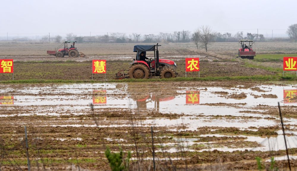 春雨下,幾臺(tái)旋耕機(jī)在江西省南昌縣蔣巷鎮(zhèn)大田現(xiàn)代農(nóng)業(yè)基地里來回作業(yè)。與其他農(nóng)機(jī)略顯不同的是,這些旋耕機(jī)的機(jī)身都裝有一個(gè)小小的智能終端和一個(gè)攝像頭。