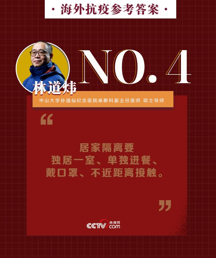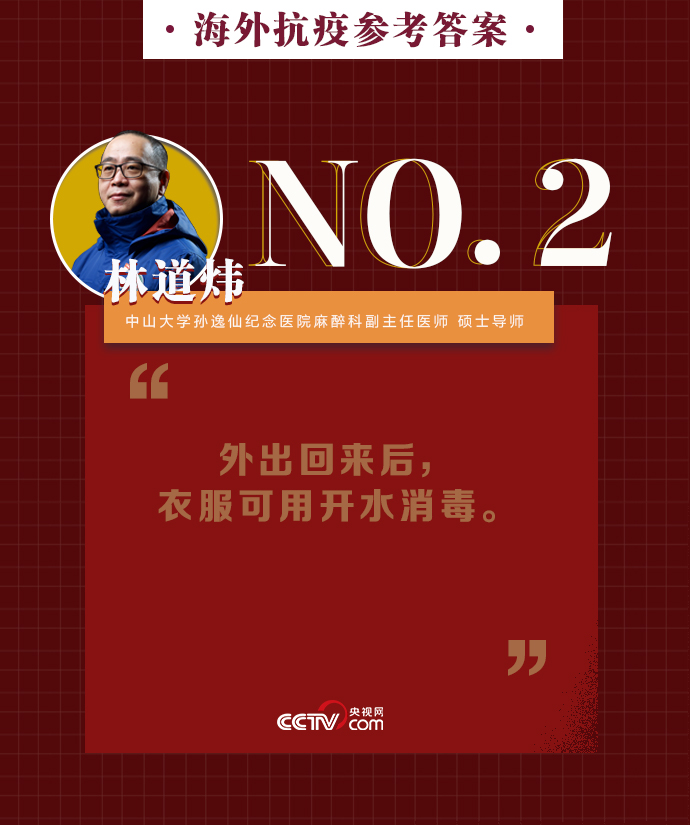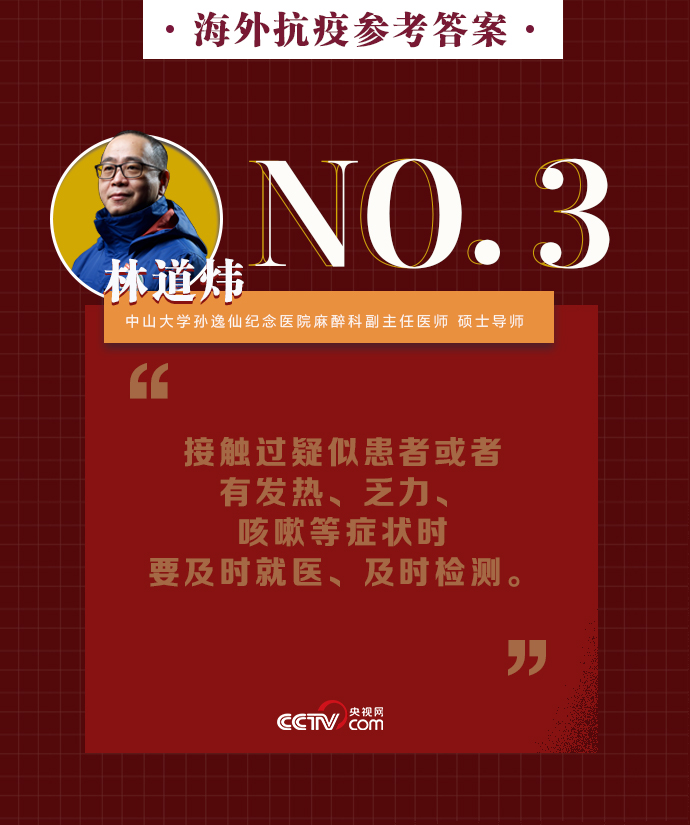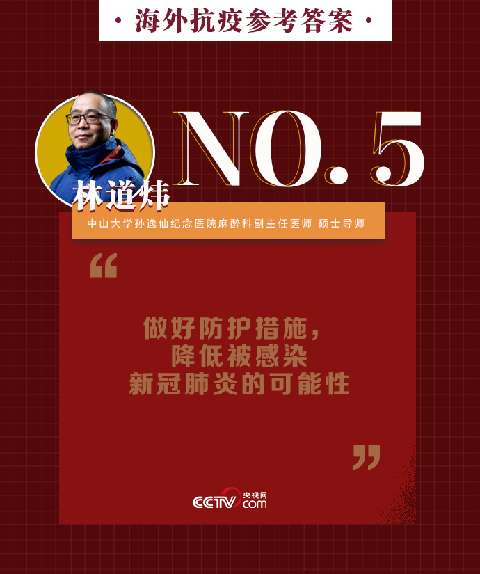 新冠肺炎疫情在全球持續(xù)暴發(fā),海外同胞如何做好基本防護、保證自身安全?出現(xiàn)焦慮緊張的負面情緒該如何緩解?中山大學(xué)孫逸仙紀念醫(yī)院麻醉科副主任醫(yī)師、碩士導(dǎo)師林道煒送上硬核攻略:戴口罩、注意手衛(wèi)生、減少與人接觸。做好這些,新冠病毒不可怕。