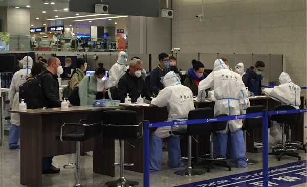 海關關員在上海浦東國際機場對入境旅客進行流行病學調(diào)查。新華社發(fā)(吳宇 攝)