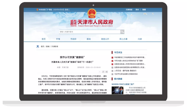 京冀來津人員通過“津心辦”APP、“津心辦”支付寶小程序、“津心辦”微信小程序申領(lǐng)天津“健康碼”,享受同城待遇,并依托全國(guó)一體化政務(wù)服務(wù)平臺(tái),通過跨地區(qū)防疫健康信息數(shù)據(jù)共享,實(shí)現(xiàn)京津冀“健康碼”信息互認(rèn),生成天津“健康碼”,憑碼出行。