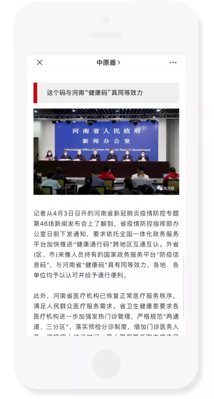 河南省依托全國(guó)一體化政務(wù)服務(wù)平臺(tái)加快推進(jìn)“健康通行碼”跨地區(qū)互通互認(rèn)。外省(區(qū)、市)來豫人員持有的國(guó)家政務(wù)服務(wù)平臺(tái)“防疫信息碼”,與河南省“健康碼”具有同等效力,各地、各單位均予以認(rèn)可并給予通行便利。