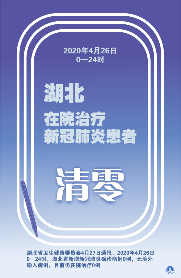 新華社武漢4月27日電(記者廖君、馮國棟)據(jù)湖北省衛(wèi)生健康委員會(huì)27日通報(bào),2020年4月26日0—24時(shí),湖北省新增新冠肺炎確診病例0例,無境外輸入病例。