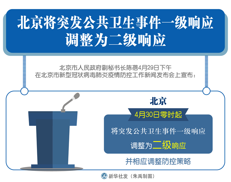 在29日召開的北京市新型冠狀病毒肺炎疫情防控工作新聞發(fā)布會上,北京市人民政府副秘書長陳蓓宣布:4月30日零時起,北京將突發(fā)公共衛(wèi)生事件一級響應(yīng)調(diào)整為二級響應(yīng),并相應(yīng)調(diào)整防控策略。北京調(diào)低應(yīng)急響應(yīng)級別,意味著什么?防控策略調(diào)整涉及哪些方面?根據(jù)29日發(fā)布會內(nèi)容,記者進行了梳理。