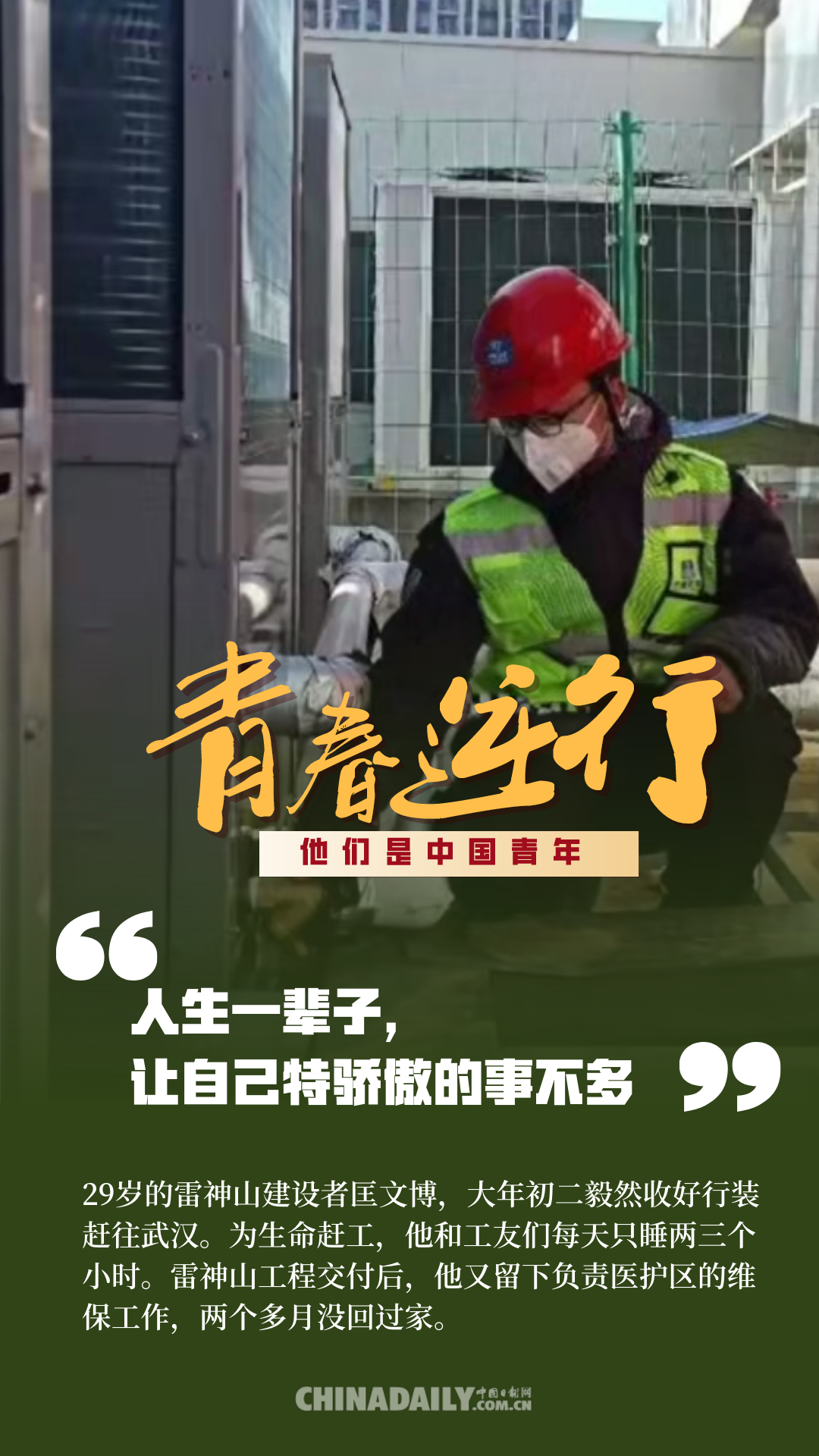 百年前,中國青年用春春和熱血,為祖國的前途命運而抗?fàn)帲话倌旰?,中國青年秉承先輩精神,沖鋒在保衛(wèi)人民健康安全的戰(zhàn)疫前線。危機之時,他們總是挺身而出,主動申請到國家和人民最需要的地方去。在這場疫情防控阻擊戰(zhàn)中,4.2萬多名援鄂醫(yī)護人員里有1.2萬多名“90后”,還有一部分是“95后”“00后”,此外,在基建工人、公安干警、志愿者、網(wǎng)格員等抗“疫”隊伍里也有許多年輕的面孔,他們在疫情防控中舍生忘死、迎難而上,為我們筑起了一道道鋼鐵長城。這些人是當(dāng)代中國青年的縮影,他們用行動證明,中國青年是堪當(dāng)大任的!