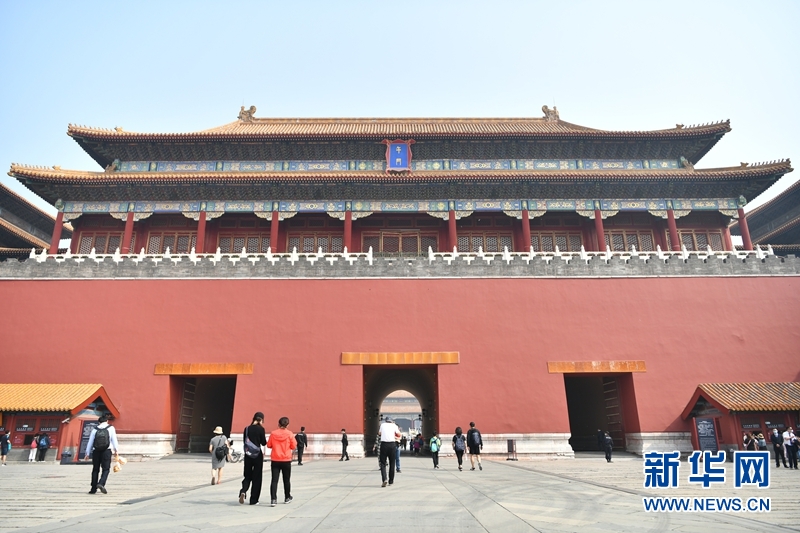 5月1日,游客從午門進入故宮。 當(dāng)日,故宮博物院有序恢復(fù)開放,實行預(yù)約、錯峰、限流等措施,每日限5000人參觀。觀眾可通過故宮博物院網(wǎng)絡(luò)售票網(wǎng)站,使用第二代身份證或護照信息預(yù)約購票。 新華社記者 李鑫 攝
