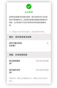 如核酸檢測結(jié)果為陰性,則防疫健康風(fēng)險狀態(tài)顯示“未見異?!?。