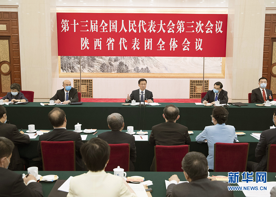 5月22日,中共中央政治局常委、國(guó)務(wù)院副總理韓正參加十三屆全國(guó)人大三次會(huì)議陜西代表團(tuán)的審議。 新華社記者 王曄 攝