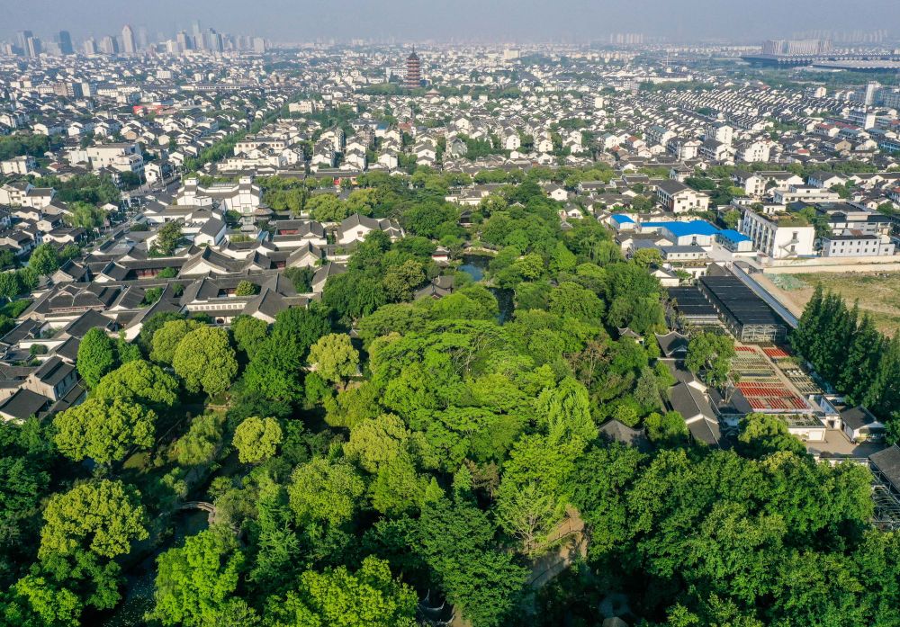 2019年5月9日拍攝的江蘇省蘇州城區(qū)風(fēng)貌(無人機(jī)照片)。新華社記者 李博 攝