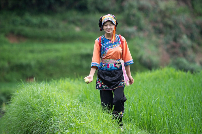 這是在湘西十八洞村拍攝的返鄉(xiāng)創(chuàng)業(yè)大學(xué)生施林嬌(7月3日攝)。新華社記者 陳思汗 攝
