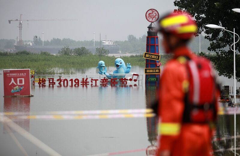 7月14日,在北京市海淀區(qū)永定路街道復(fù)興路40號(hào)社區(qū)出入口,疫情防控志愿者羅興為社區(qū)居民測(cè)量體溫。? 新華社記者 任超 攝