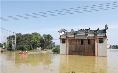 7月14日,江西省鄱陽縣龍口村下屬自然村藕塘村文化中心,洪災(zāi)期間成為進出村內(nèi)的碼頭。