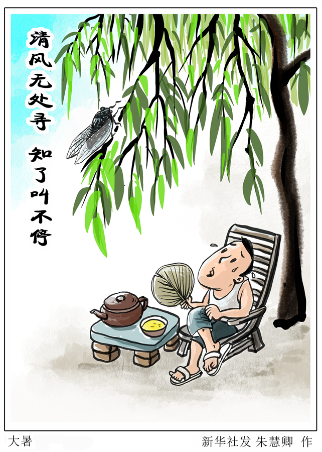 “大暑熱難當(dāng),知了叫不?!薄A_澍偉提醒說,此時(shí)節(jié),暑熱難消,心氣容易虧耗,建議公眾保持安寧清靜的心境,如端坐閉目、聽聽舒緩的音樂,或到湖邊進(jìn)行散步、打太極拳等有氧運(yùn)動。
