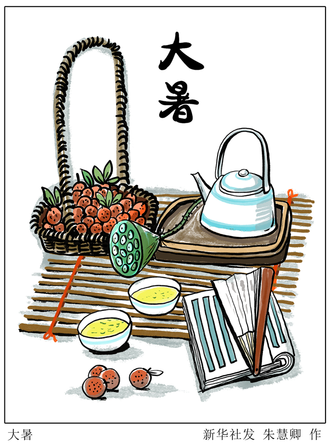 “赤日幾時(shí)過,清風(fēng)無處尋”?!按笫睢笔且荒曛凶顭岬囊粋€(gè)節(jié)氣,古籍《月令七十二候集解》中解釋說:“暑,熱也。就熱之中分為大小,月初為小,月中為大”。酷熱多雨、高溫潮濕是此時(shí)節(jié)的天氣特點(diǎn),“桑拿天”幾乎成為常態(tài)。