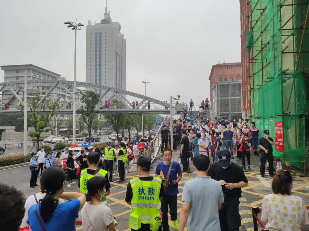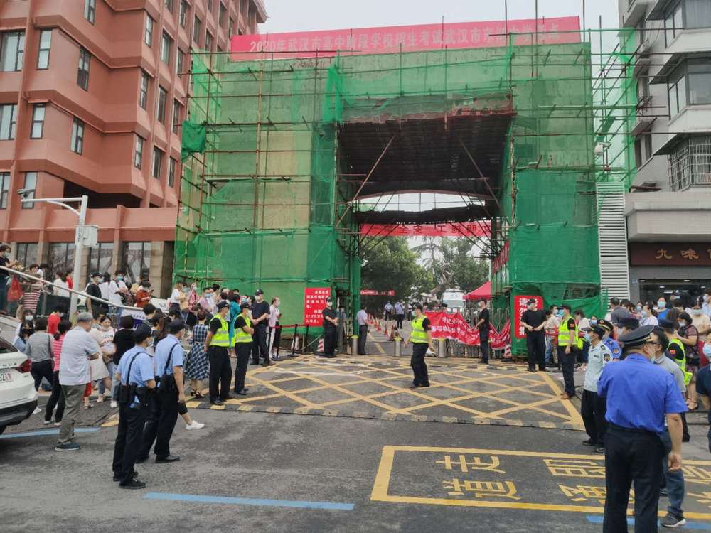 記者在武漢東湖中學(xué)考點(diǎn)門(mén)前看到,交警、民警、水務(wù)、電力、城管等多個(gè)部門(mén)工作人員嚴(yán)陣以待,以高考標(biāo)準(zhǔn)迎接考生進(jìn)場(chǎng)。