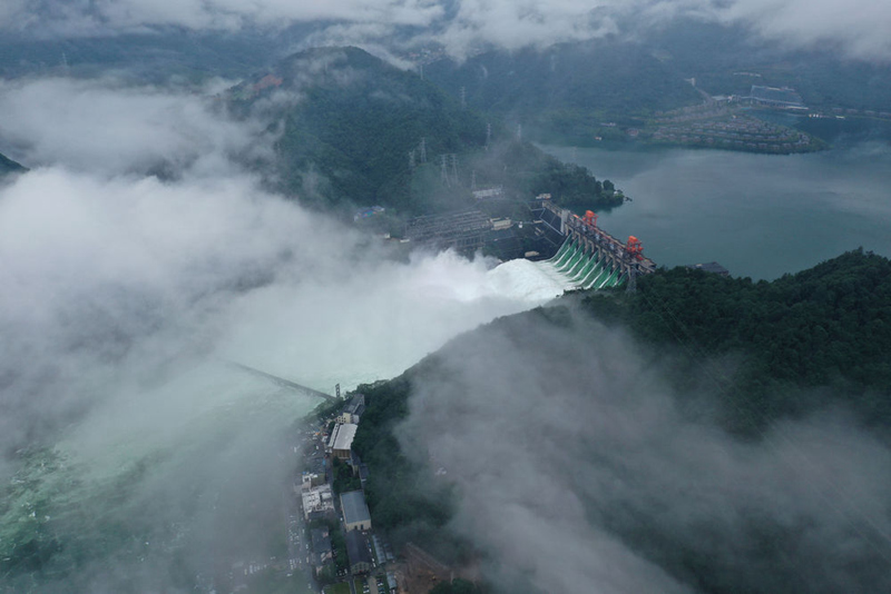本次新安江水庫開九孔泄洪,最大出庫流量7600立方米/秒(含發(fā)電流量1200立方米/秒)。本次泄洪歷時173小時,總出庫水量33.9億立方米(發(fā)電水量10.7億立方米,閘門泄洪水量23.2億立方米),為歷次泄洪總水量之首。