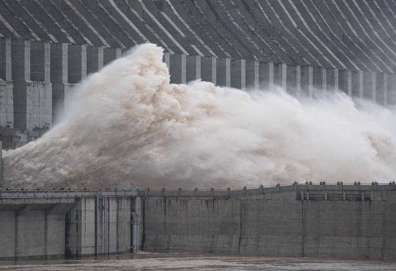 7月19日,三峽樞紐開啟泄洪深孔泄洪。新華社記者 肖藝九 攝