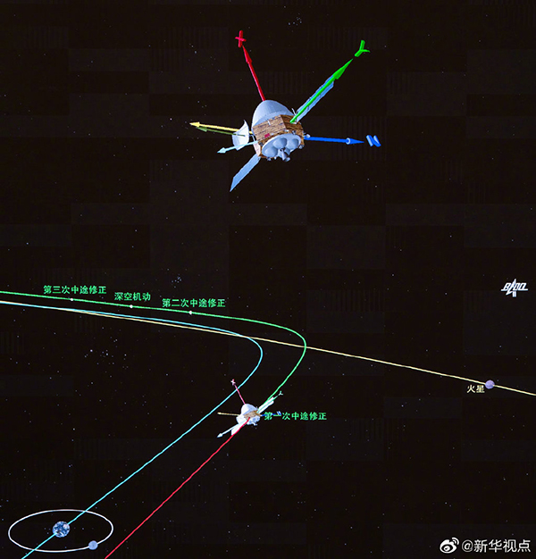 截至第一次軌道修正前,“天問一號”已飛行9天17個小時,距離地球超過300萬公里,探測器各系統(tǒng)狀態(tài)良好。此次3000牛發(fā)動機(jī)點(diǎn)火,在完成軌道修正的同時,驗證了發(fā)動機(jī)在軌的實際性能。