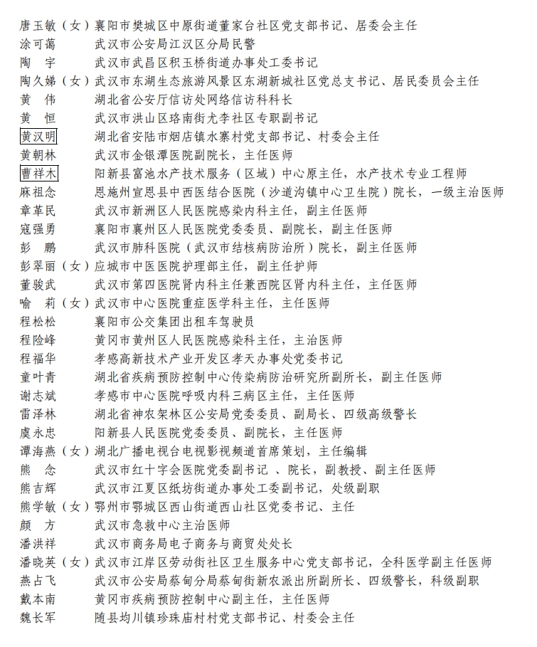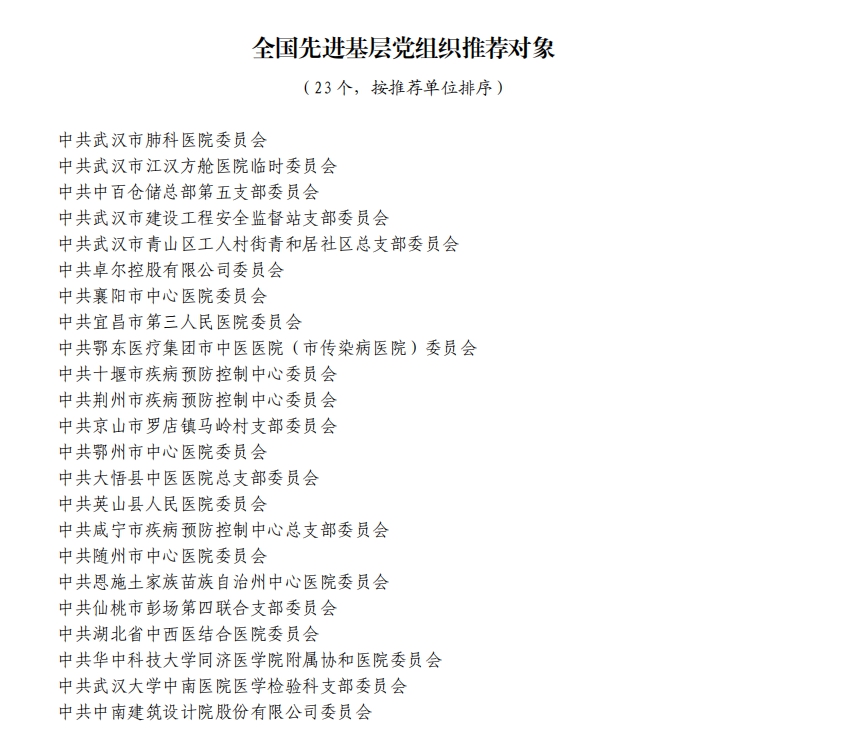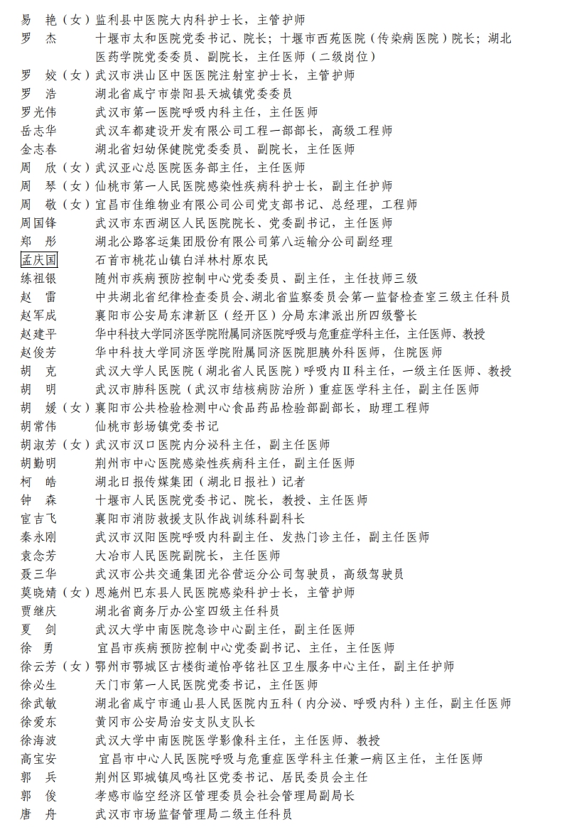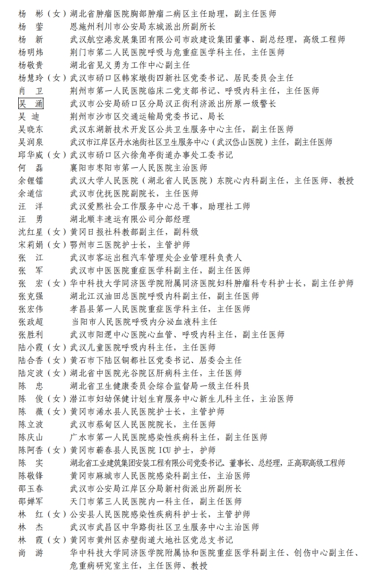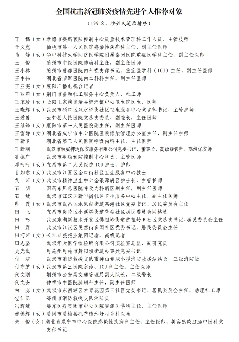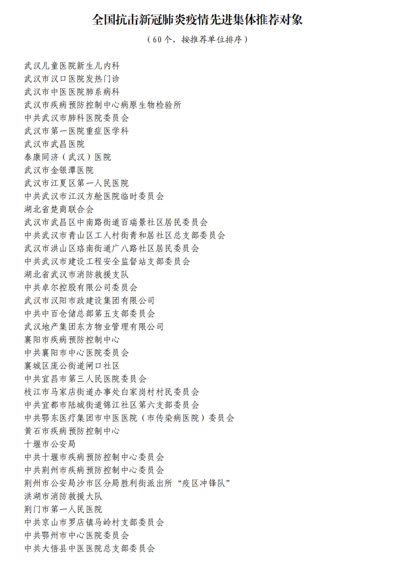 據(jù)湖北省人民政府網(wǎng)站消息,5日,湖北省人民政府發(fā)布關(guān)于全國(guó)抗擊新冠肺炎疫情先進(jìn)個(gè)人、先進(jìn)集體和全國(guó)優(yōu)秀共產(chǎn)黨員、全國(guó)先進(jìn)基層黨組織推薦對(duì)象的公示。武漢市武昌醫(yī)院原黨委副書記、院長(zhǎng),主任醫(yī)師劉智明等入選。