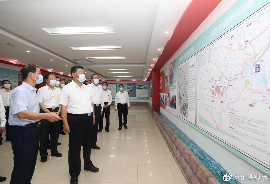 習近平總書記18日赴安徽考察調研。當天下午,他先后來到阜陽市阜南縣王家壩閘、紅亮箱包有限公司、蒙洼蓄洪區(qū)曹集鎮(zhèn)利民村西田坡莊臺,察看淮河水情,走進田間地頭,了解當?shù)胤姥淳葹暮蜑暮蠡謴蜕a(chǎn)等情況,看望慰問受災群眾。(文字記者:張曉松 攝影記者:鞠鵬 王曄)