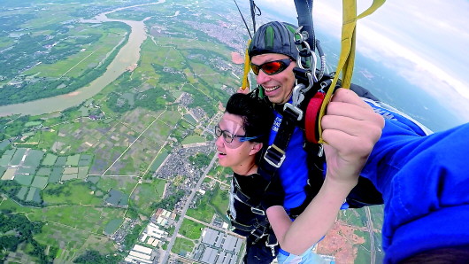 更瘋狂的是去年6月,方堅澤嘗試了一次跳傘。那天教練帶著他從4千米的高空躍下,當(dāng)毫發(fā)無損地回到地面,他對人生又有了更多的感悟:挫折對人生而言微不足道,奮斗和努力會讓人活得出彩。