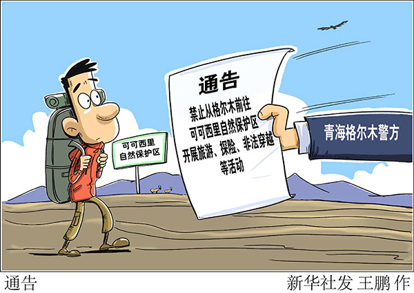 為加強(qiáng)可可西里自然保護(hù)區(qū)的管理和保護(hù),保障廣大人民群眾和游客人身安全,維護(hù)社會(huì)治安秩序,格爾木市公安局根據(jù)有關(guān)法律法規(guī)和文件精神發(fā)布通告,禁止一切社會(huì)團(tuán)體或個(gè)人隨意從格爾木前往玉樹藏族自治州可可西里自然保護(hù)區(qū),開展旅游、探險(xiǎn)、非法穿越等活動(dòng)。