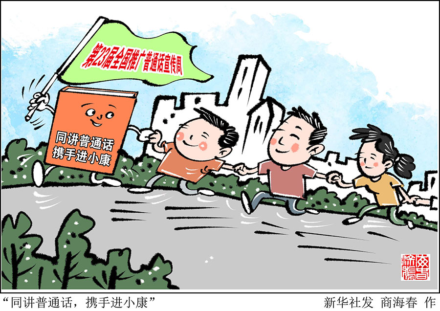第23屆全國推廣普通話宣傳周14日拉開帷幕,今年宣傳周的主題為“同講普通話,攜手進小康”。語言文字是人類交流的工具,是文化傳承的載體,也是治國安邦的重器。在決勝全面建成小康社會、決戰(zhàn)脫貧攻堅的關(guān)鍵節(jié)點,要堅定不移推廣普及國家通用語言文字,促進各地區(qū)各民族發(fā)展繁榮。