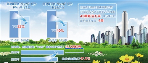 與此同時(shí),2019年京津冀區(qū)域“2+26”城市生產(chǎn)總值達(dá)到14.2萬(wàn)億元,比2016年增長(zhǎng)了17.2%。
