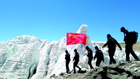 “你在高山之巔,背靠著信念,自己也成了靠山。你在世界之巔,與冰雪為伴,時(shí)空也有了溫暖。愛(ài)國(guó)使命,融進(jìn)你的血脈,刻成了信念,也托起了藍(lán)藍(lán)的天?!保▌⑿〔荩?/p>