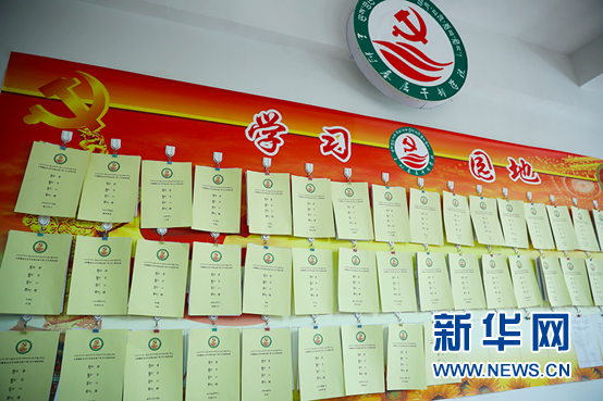 玉樹(shù)州基層干部學(xué)院學(xué)習(xí)園地展示著學(xué)員們的學(xué)習(xí)心得。新華網(wǎng)記者焦鵬攝