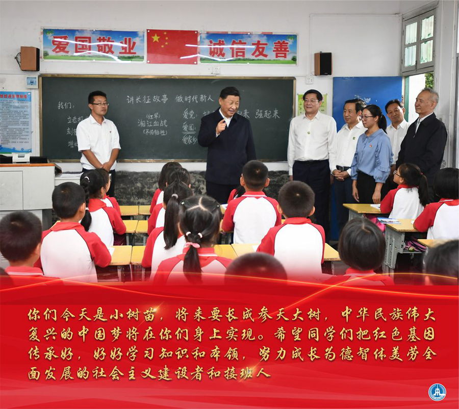 望著孩子們稚嫩而明亮的眼睛,習(xí)近平總書記飽含深情地說:“紅色基因在你們身上得到了體現(xiàn)。革命事業(yè)要一代一代傳下去。同學(xué)們要學(xué)好革命故事,銘記在心,同時把建設(shè)現(xiàn)代化的知識和本領(lǐng)也掌握好,努力做社會主義建設(shè)者和接班人。你們現(xiàn)在是一棵棵小樹苗,將來有一天就會長成中華民族的參天大樹。”