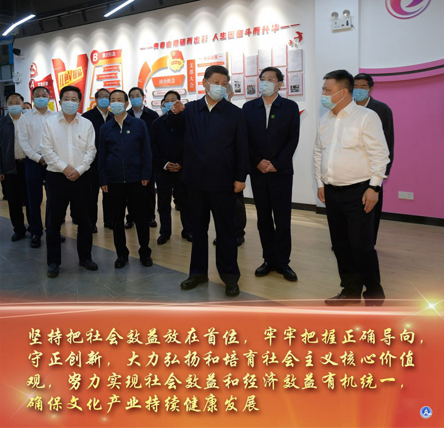 離開園區(qū)時,習(xí)近平總書記強(qiáng)調(diào):“文化產(chǎn)業(yè)既有意識形態(tài)屬性,又有市場屬性,但意識形態(tài)屬性是本質(zhì)屬性。剛才我看到你們墻上掛著一幅字‘導(dǎo)向金不換’,也可以引用來說明這樣一個道理。一定要牢牢把握正確導(dǎo)向,堅持守正創(chuàng)新,確保文化產(chǎn)業(yè)持續(xù)健康發(fā)展?!?/p>
