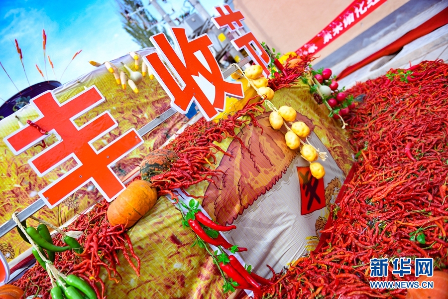2020年慶祝中國農民豐收節(jié)暨循化縣消費扶貧“辣椒節(jié)”現場展示的各類農作物。(新華網潘彬彬攝)